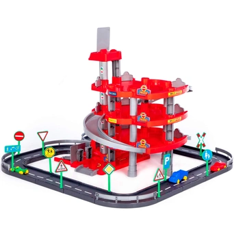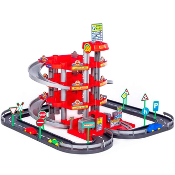 Четырехуровневый паркинг станет одной из любимых игрушек ребенка. В него малыш может играть один или с друзьями, поскольку парковка имеет довольно крупные размеры, а в комплект входят сразу три автомобиля. Гараж состоит из четырех уровней: