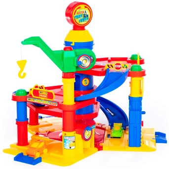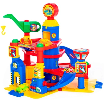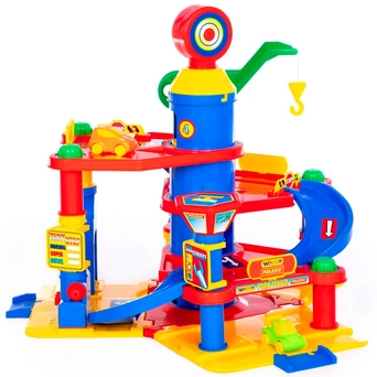 Четырехуровневый паркинг с двумя машинками - это желанный подарок для мальчиков и девочек, который позволит отлично провести время сразу нескольким детям. Тут есть лифт, заправка, автосервис и автомойка, кран, вертолетная площадка, все элементы приводятся в движение вращением соответствующих ручек. Машинки будут плавно съезжать сверху вниз, если поставить их на наклонный пандус на верхнем ярусе. Все элементы набора изготовлены из качественных безопасных материалов, не имеют острых краев и зазубрин.