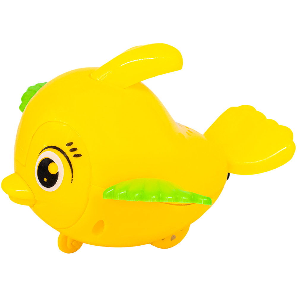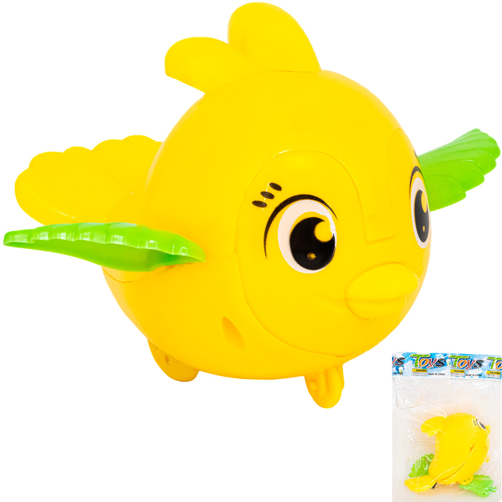 Оригинальная яркая игрушка оснащена заводным механизмом.