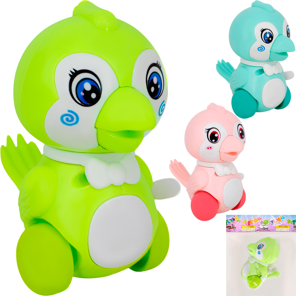 Оригинальная яркая игрушка оснащена заводным механизмом.