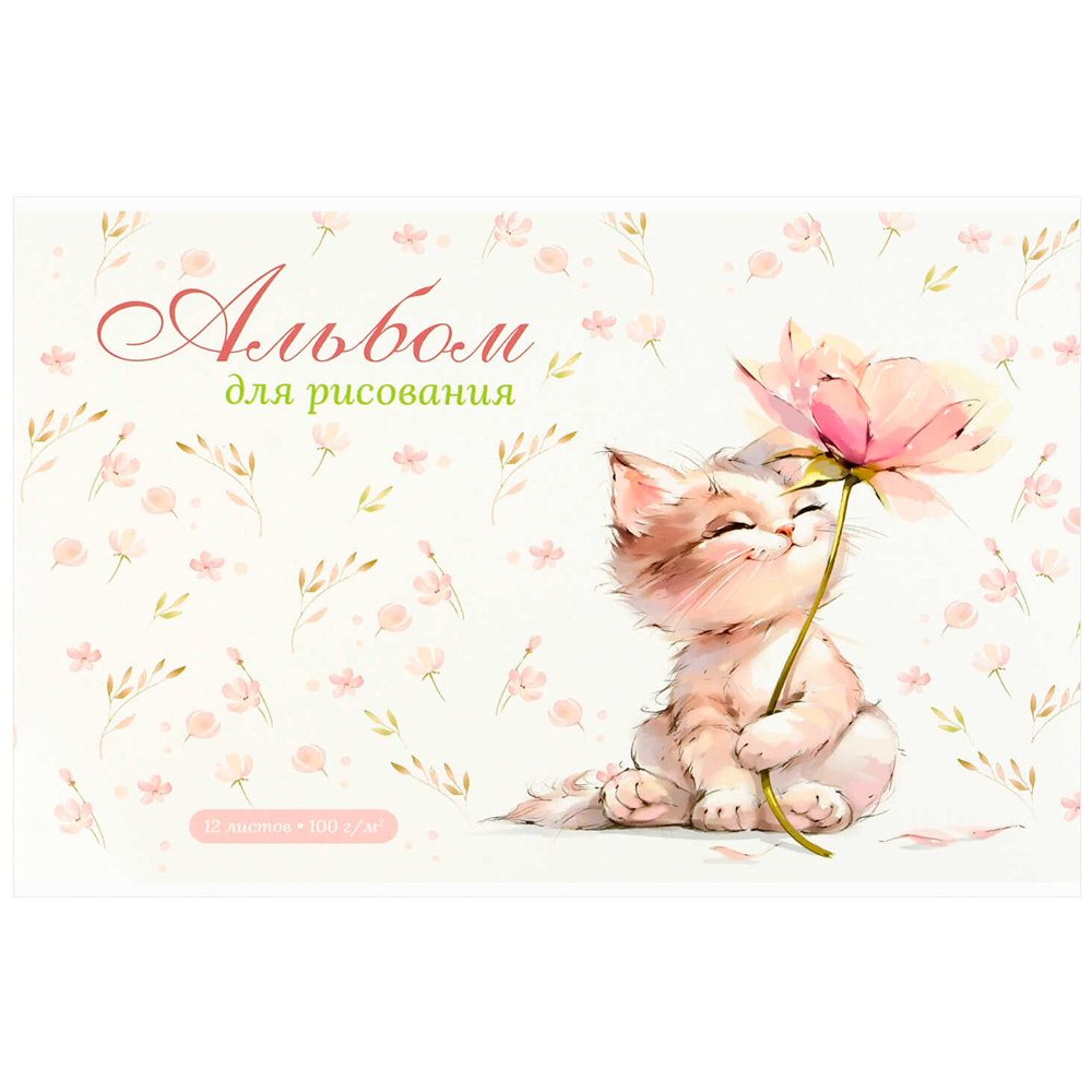 Альбом для рисования 12 л. А4 Кот с цветком 73109