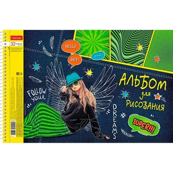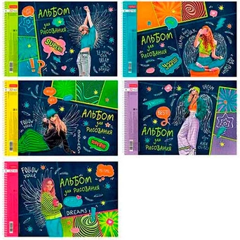 Альбом с яркой обложкой из мелованного картона предназначен для рисования акварелью, гуашью, карандашами, мелками и фломастерами.