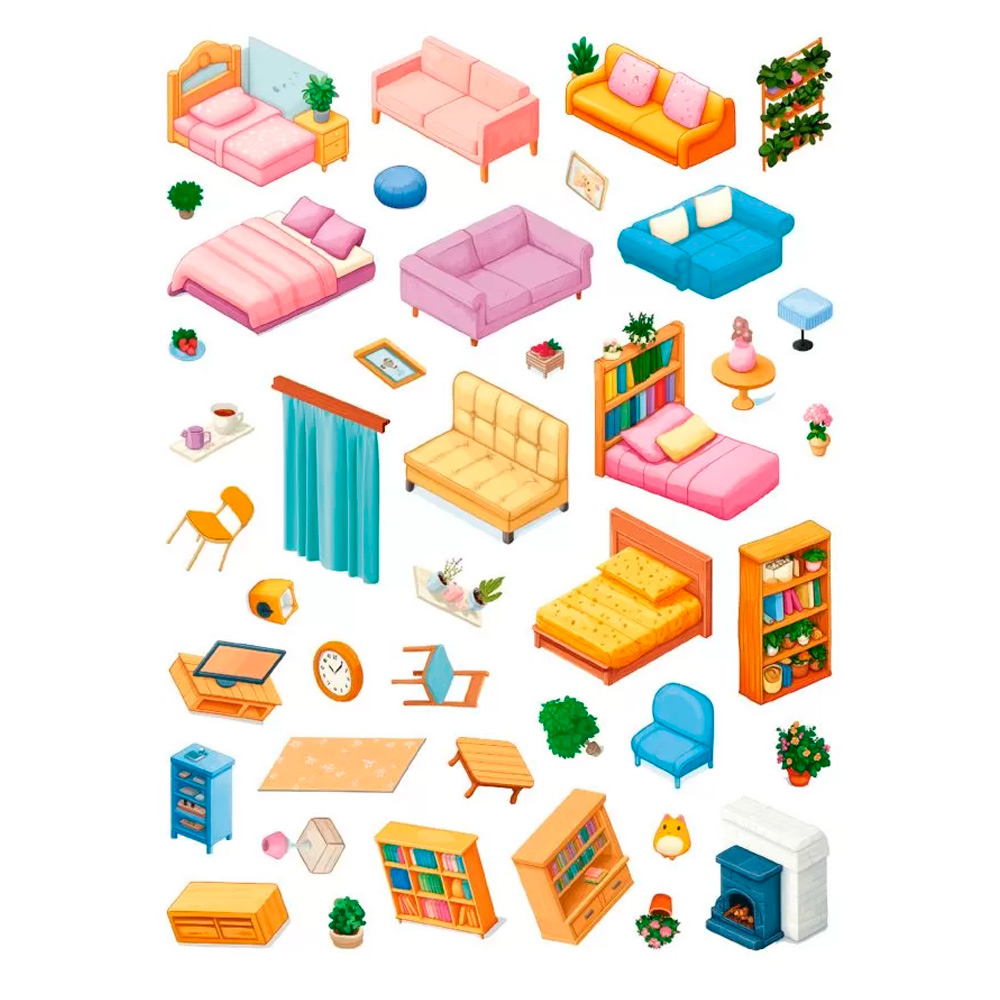 - 20 стр. (4 с. с наклейками (печать с 1 стороны), 4 с. с комнатами (печать с 1 стороны), 4 с. для рассказа);
