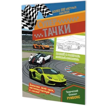 - множество наклеек с изображениями самых крутых и популярных автомобилей XX и XXI века! Также внутри вы найдёте 6 интересных локаций, куда можно наклеить стикеры и заполнить автомобилями любимых марок гоночный трек, автосервис или даже целый городской квартал!