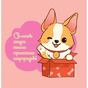 - квадратный формат, удобная линовка в клетку, плотные цветные страницы, забавные иллюстрации и позитивные фразы;