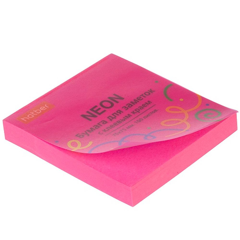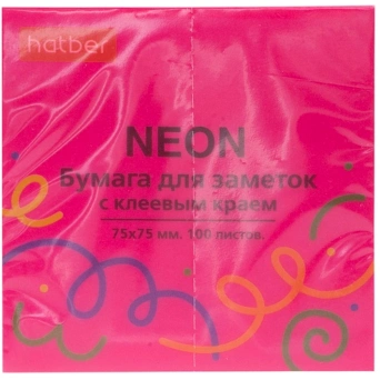 Бумага для заметок NEON 75X75мм 100л с клеевым краем Розовая 090325