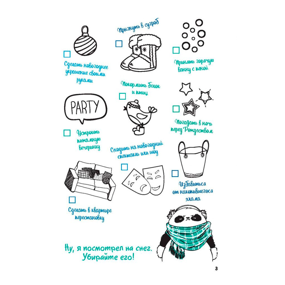 Внутри вы найдете: чек-листы и трекеры, челленджи и списки, необычные линовки и милый персонаж-панда.