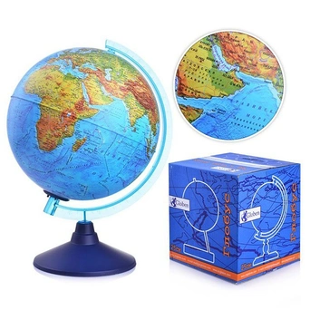 Глобус Земли физико-политический рельефный с подсветкой от компании GLOBEN с - эффектное и практичное дополнение к ученическому рабочему месту. Глобус отличает качественная полиграфия, приятная цветовая гамма и детальная прорисовка рельефов. Макет Земного шара диаметром в 250 мм, традиционно наклоненный под углом 70° и закрепленный на устойчивой пластиковой подставке, впишется в любой уголок интерьера.