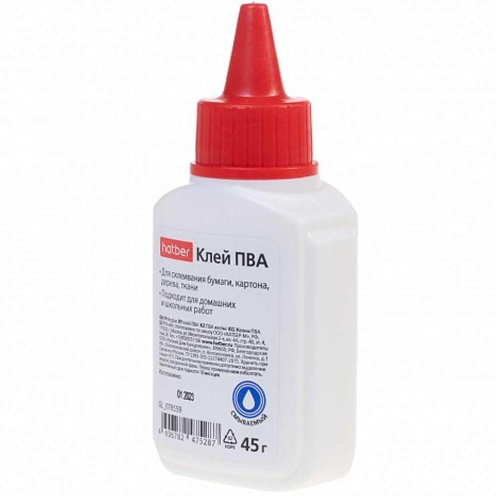 Клей ПВА предназначен для склеивания бумаги, картона, ткани, фотографий, дерева и кожи. Подходит для использования в школе, дома, в офисе.