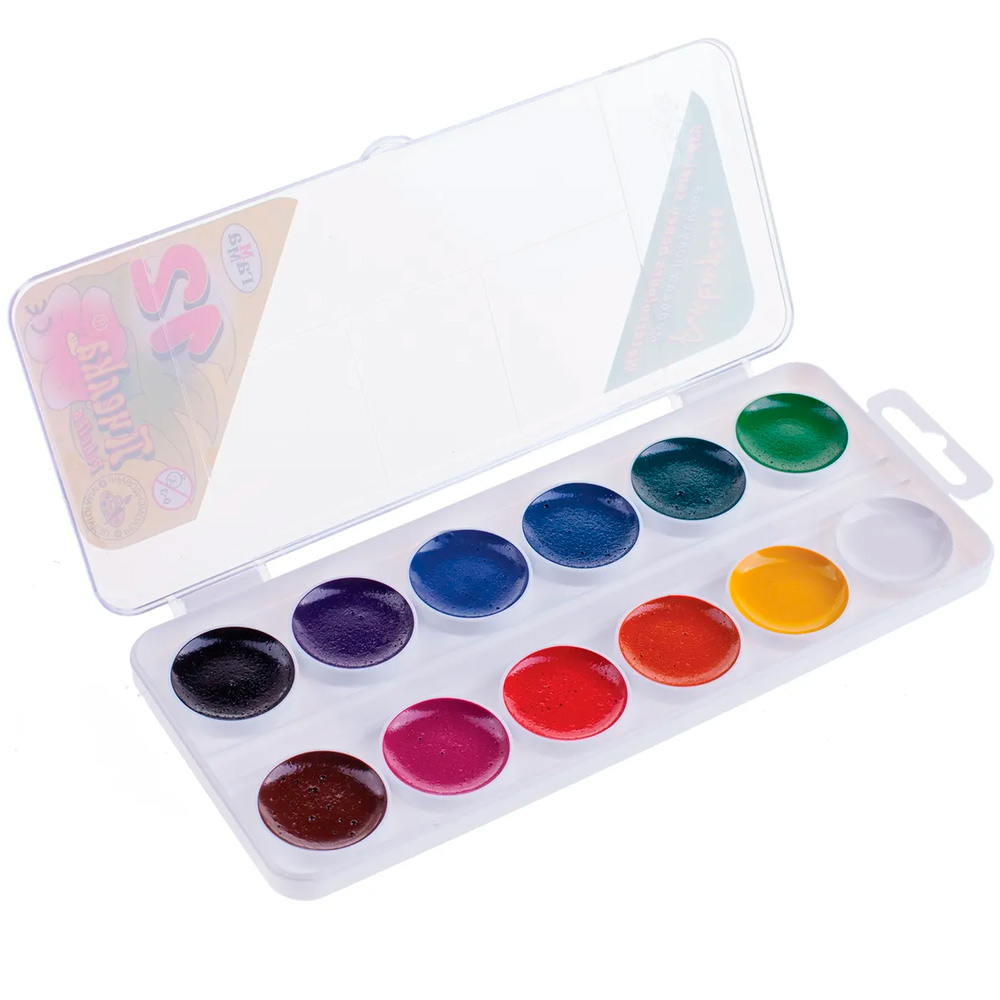 Качественные канцтовары - залог успешного творчества. Набор акварели предназначен для работы в различных техниках рисунка. Эти краски позволяют писать работу с перерывами, возвращаясь к ней по мере необходимости. Такие краски долго сохраняют цвет, не растекаются, равномерно ложатся на бумагу. Краска в таблетках с высоким содержанием цветного пигмента, на бумаге образует яркие оттенки. Важным достоинством акварели является ее повышенная устойчивость к выгоранию под воздействием прямых ультрафиолетовых лучей, которая обусловливается наличием в составе краски высококрасящего пигмента.