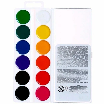 Акварельные краски имеют яркие, чистые цвета, прозрачную основу при нанесении, без вкраплений. Краски легко смешиваются между собой, сохраняя насыщенность цвета, смываются без труда с рук.