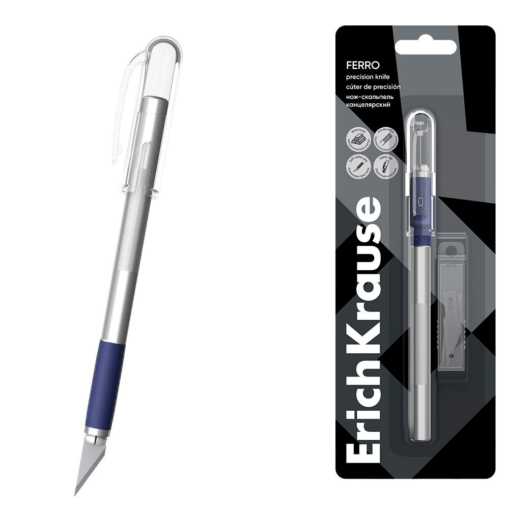 Комплектация: нож - 1 шт., колпачок - 1 шт., 2 сменных лезвия в пластиковом пенале
