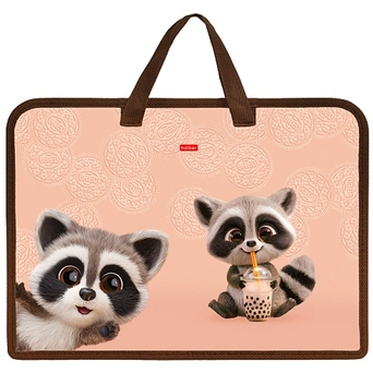 Папка для тетрадей на молнии 1 отделение Вот енот с ручками 094458