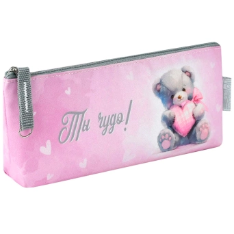Пенал на молнии Мишка с сердцем 21х3,5х8 71978
