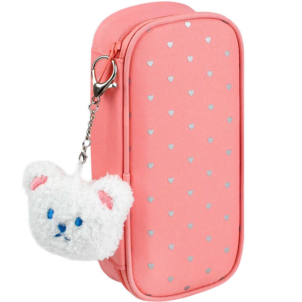 Пенал на молнии Мишка с сердечками 9х20х4,5 см 72206