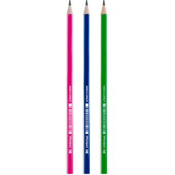 Канцелярские товары производителя завоевали широкую популярность, благодаря высокому качеству и ценовой лояльности. Чернографитный заточенный карандаш в цветном корпусе подходит для графического рисунка, эскизов, чертежных работ, а также заметок и записей. Подходит как для офисного и домашнего использования, так и для рисования и письма в детских и прочих учреждениях. Карандаш обладает прочным твердо-мягким грифелем с маркировкой HB. Диаметр грифеля составляет 2 мм. Корпус выполнен из ударопрочного материала. На корпус нанесена надпись.