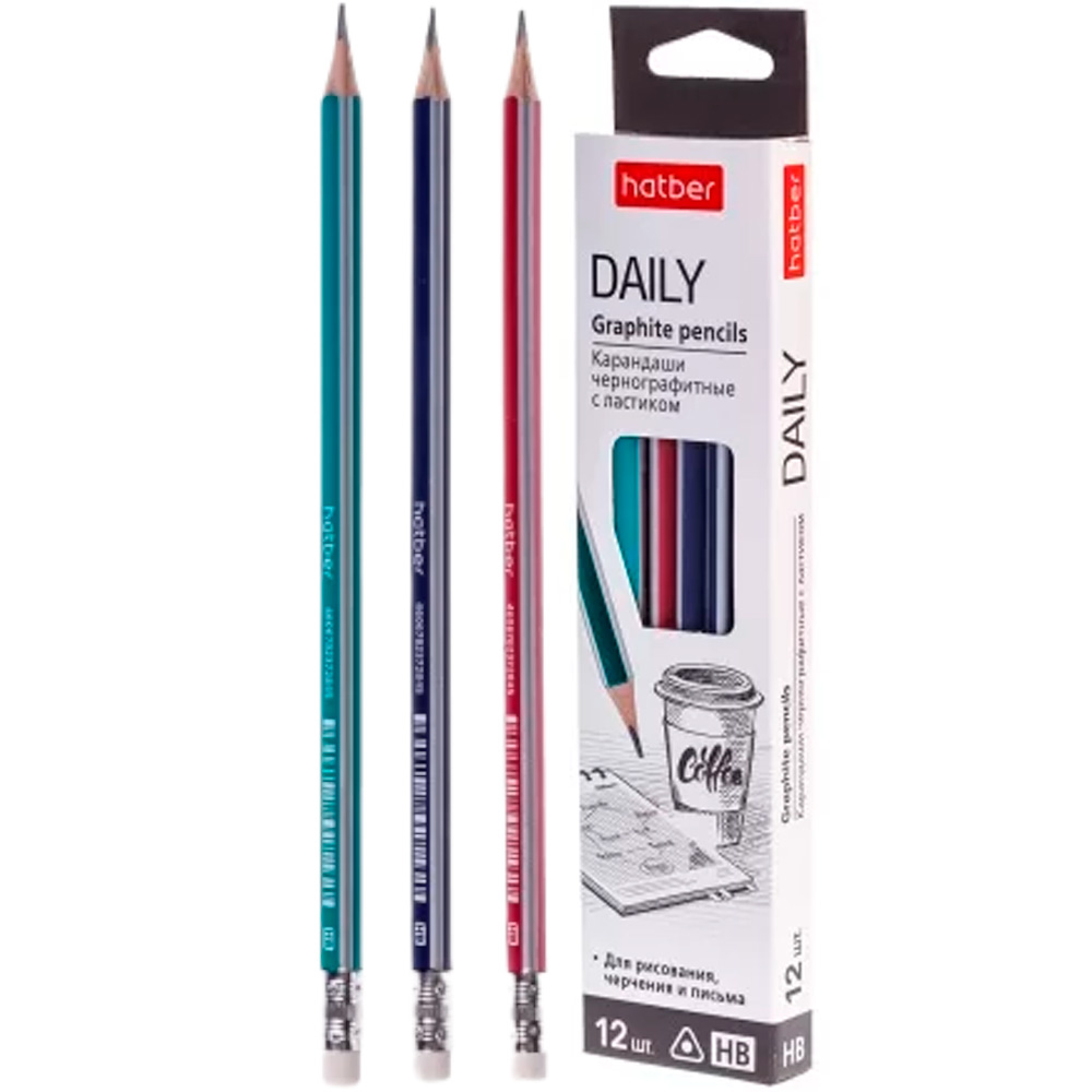 Карандаш обладает прочным твердо-мягким грифелем с маркировкой HB.