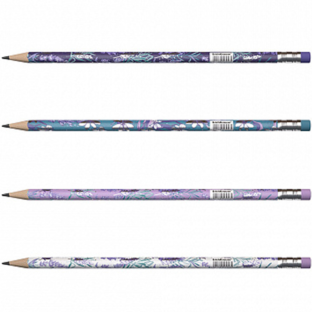 Карандаш оснащен ластиком, который надежно крепится металлическим держателем.