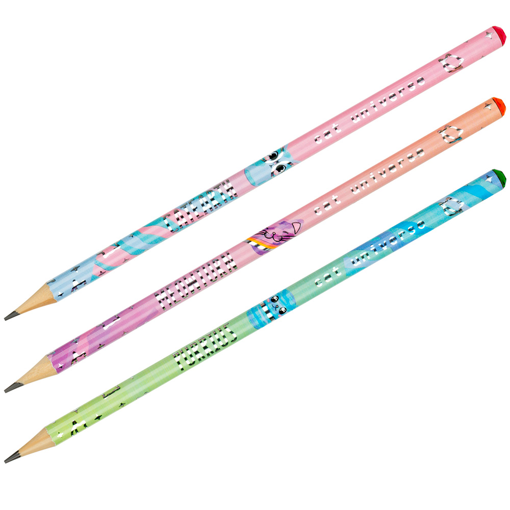 Карандаш обладает прочным твердо-мягким грифелем с маркировкой HB.