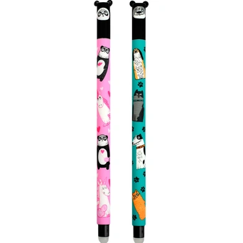 - чернила стираемые: для удаления надписи её необходимо потереть специальным ластиком, встроенным в корпус ручки;