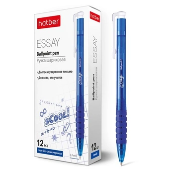 Автоматическая ручка Essay в синем тонированном корпусе и мягким резиновым грипом для удобства письма. Длина стержня 11,7 см, стержень с ушками, чернила синие на масляной основе.