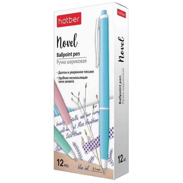 Автоматическая ручка Novel в корпусе пастельных цветов и мягким резиновым грипом для удобства письма. Длина стержня 10,7 см, стержень с ушками, чернила синие на масляной основе.
