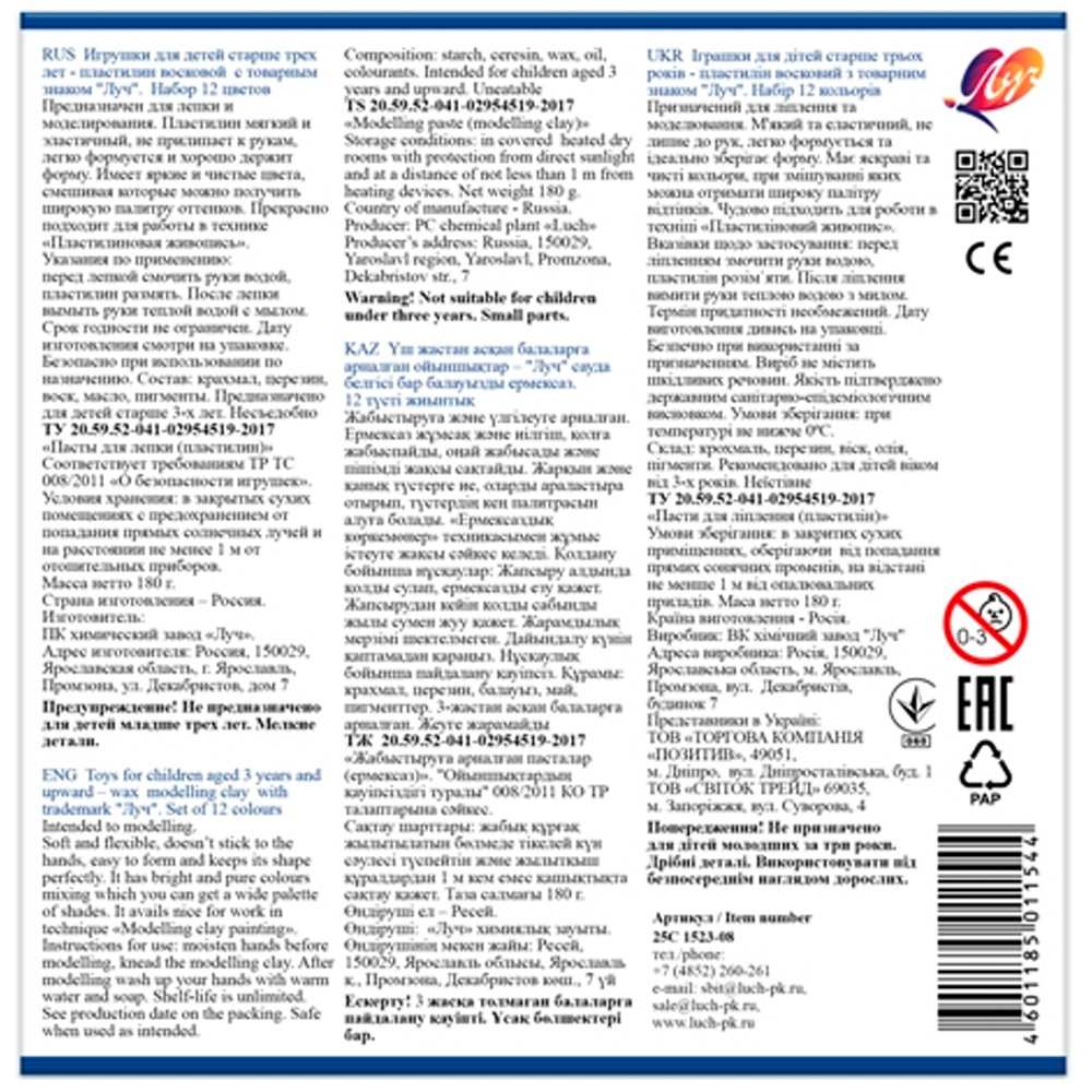 Комплектация: пластилин - 12 цветов, стекМатериал: картон, пластилин