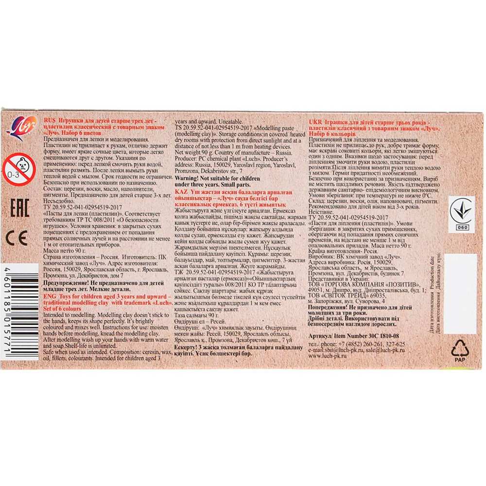 Комплектация: пластилин - 6 шт.