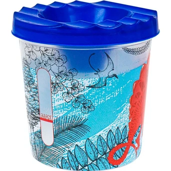 Удобный и практичный стакан-непроливайка имеет одно отделение и яркую съемную крышку.