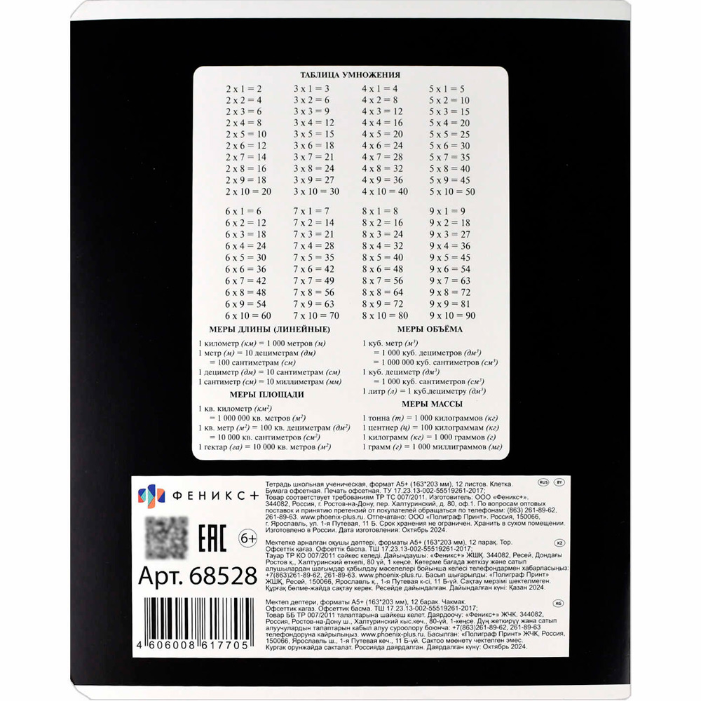- на задней стороне — таблица умножения и метрическая система мер;