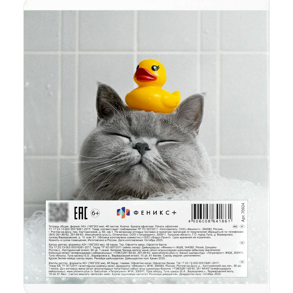 Тетрадь 48 л. клетка Кот с уткой 70924