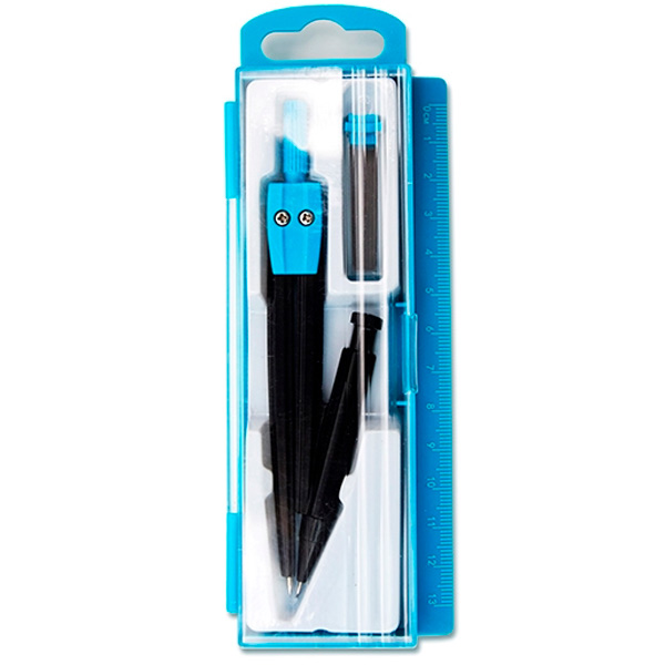 Комплектация: футляр с линейкой - 1 шт., циркуль - 1 шт., пенал с запасным грифелем - 1 шт.