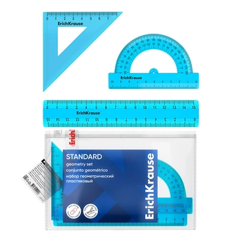 Комплектация: линейка - 1 шт., транспортир - 1 шт., треугольник - 1 шт.