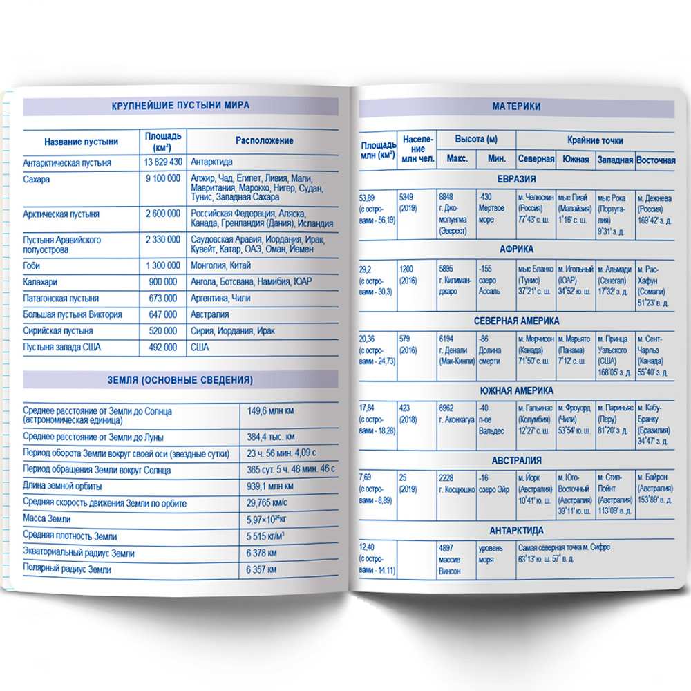 - в тетради (на обложках) имеется справочный материал по предмету.