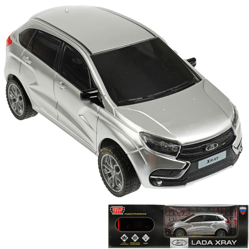Металлическая модель представляет собой копию автомобиля LADA -XRAY на дистанционном управлении.