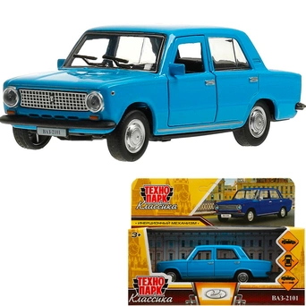 Модель 2101-12-BU ВАЗ-2101 длина 12 см, двери, багаж, инерц, синий Технопарк в коробке