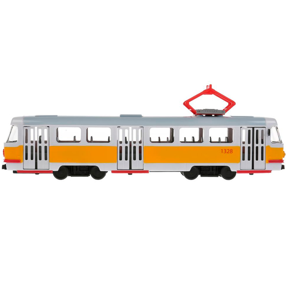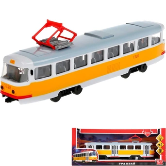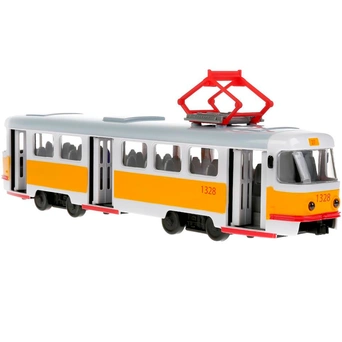 Любителям городской техники понравится эта оригинальная модель вагона трамвая. Классический вагон от бренда "Технопарк" оценят любители наземного транспорта. Такая модель станет прекрасным подарком юному коллекционеру. Прозрачные окна позволяют разглядеть внутри детально проработанный салон. Трамвай оснащен инерционным механизмом и световыми и звуковыми эффектами (при нажатии на корпус раздастся звук звонка трамвая и голос вагоновожатого со словами: «Осторожно, двери закрываются. Следующая остановка улица Парковая» и «Уступайте места пассажирам с детьми, бабушкам и дедушкам»), что делает игры с ним гораздо увлекательнее. С таким трамваем интересно будет играть с друзьями. Он разнообразит "городские" игровые сюжеты.