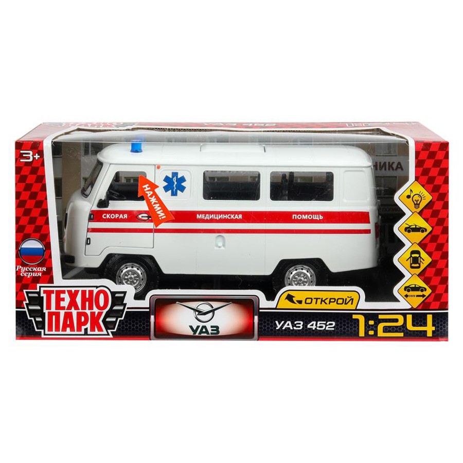 Модель представляет собой копию автомобиля скорой помощи.