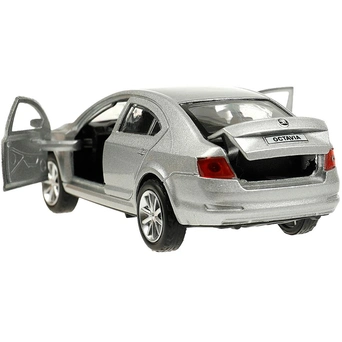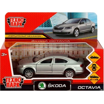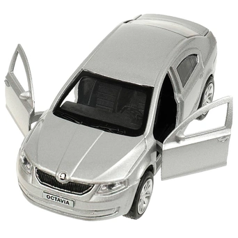 Модель OCTAVIA-12-SR SKODA OCTAVIA 12 см, двери, багаж, инерц. серебристый Технопарк в коробке
