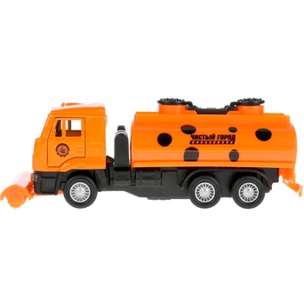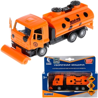 Уборочная машина "Камаз", оснащенная инерционным механизмом, займет достойное место среди игрушечных машинок ребенка. Корпус автомобиля выполнен в ярко-оранжевом и черных цветах, из качественного металла с пластиковыми элементами. Машинка хорошо детализирована и продумана до мелочей, а игра с ней будет способствовать развитию у ребенка воображения, сюжетно-образного мышления и моторики.