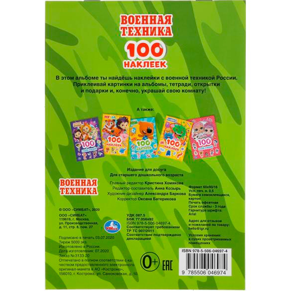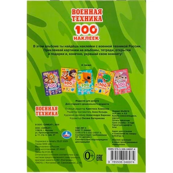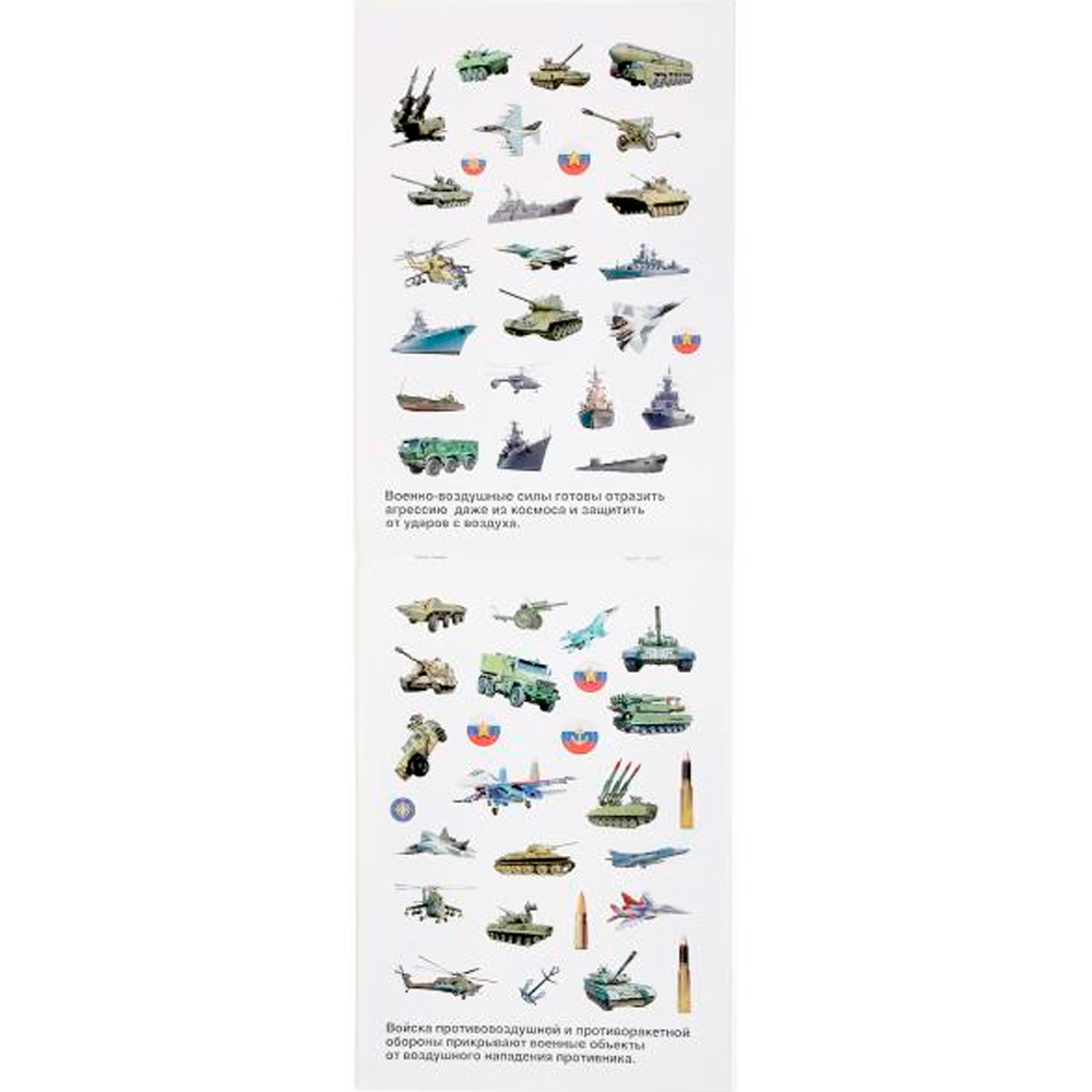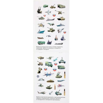 Ярко проиллюстрированная книжка содержит яркие наклейки с картинками военной техники. Наклеивание наклеек развивает мелкую моторику и зрительное восприятие. Они изготовлены из плотной бумаги. Они хорошо клеятся на гладкую поверхность. Ими можно декорировать блокнот или дверцу шкафа. Это стимулирует их воображение, позволяет успокоить и разнообразить досуг.