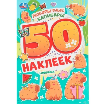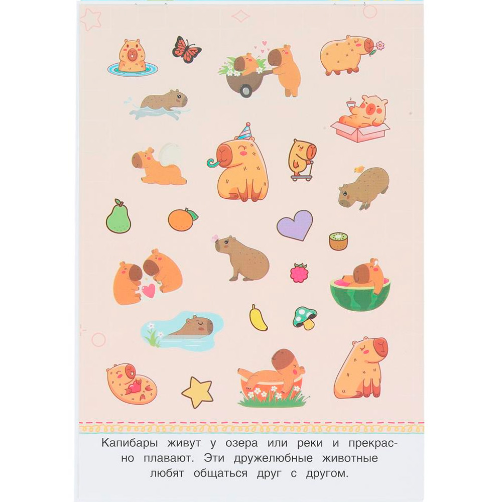 Альбом наклеек «Любопытные капибары 50 наклеек» ТМ «УМка» .