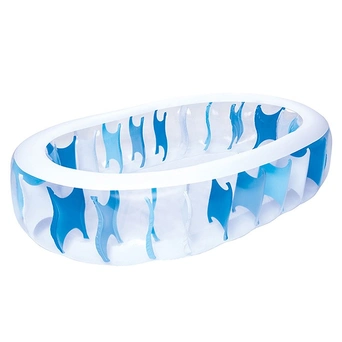 Бассейн овальной формы может использоваться как для воды, так и в качестве сухого бассейна. Изготовлен из высококачественного винила, устойчивый, надежный и безопасный. Имеет мягкие стенки с широкими бортиками и жесткое дно из ПВХ-пленки. Бассейн легко надувается и устанавливается на любой ровной поверхности. На холодное время года не рекомендуем оставлять бассейн на открытом воздухе. изайн в морском стиле с полупрозрачными стенками украсит ваш участок. Объёмные бортики позволяют удобно облокотиться на них, а малыши могут с лёгкостью перелезать через мягкие стенки. В комплект входит заплата для ремонта.
