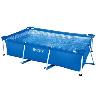 Бассейн на опорах Rectangular frame — это удобный бассейн, который сможет разместиться на достаточно небольшой ровной поверхности. Чаша бассейна крепится на специальный прочный каркас, изготовленный из нержавеющей стали. Материал бассейна — это трехслойный винил, который хорошо держит форму, а также способен выдержать давление, создаваемое большим количеством воды. Бассейн прост в эксплуатации, поэтому у вас не возникнет проблем с его установкой.