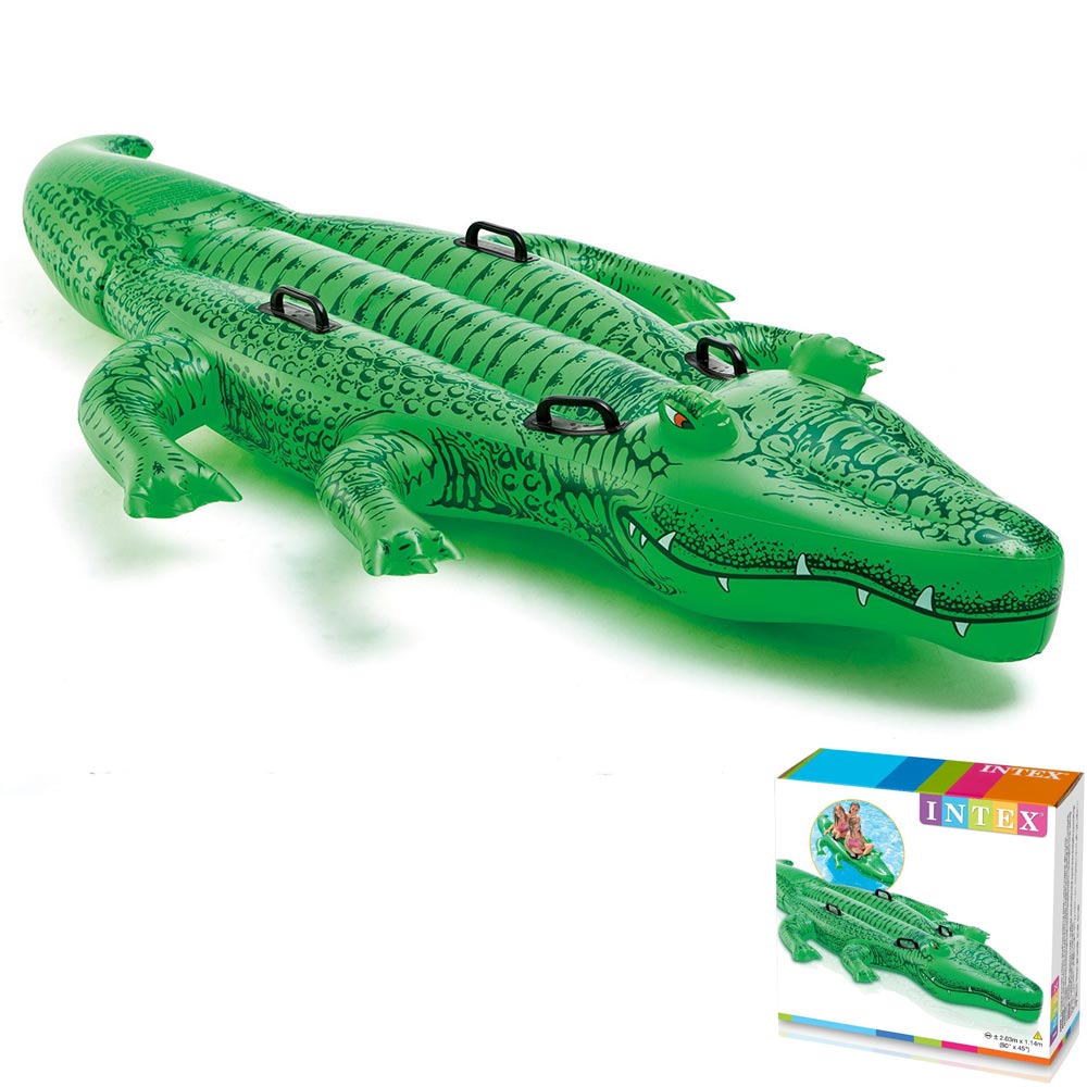 Яркая надувная игрушка для плавания в виде крокодила выполнена из высокопрочного и износостойкого винила и оборудована ручками для удобного захвата.