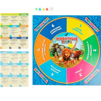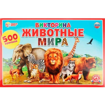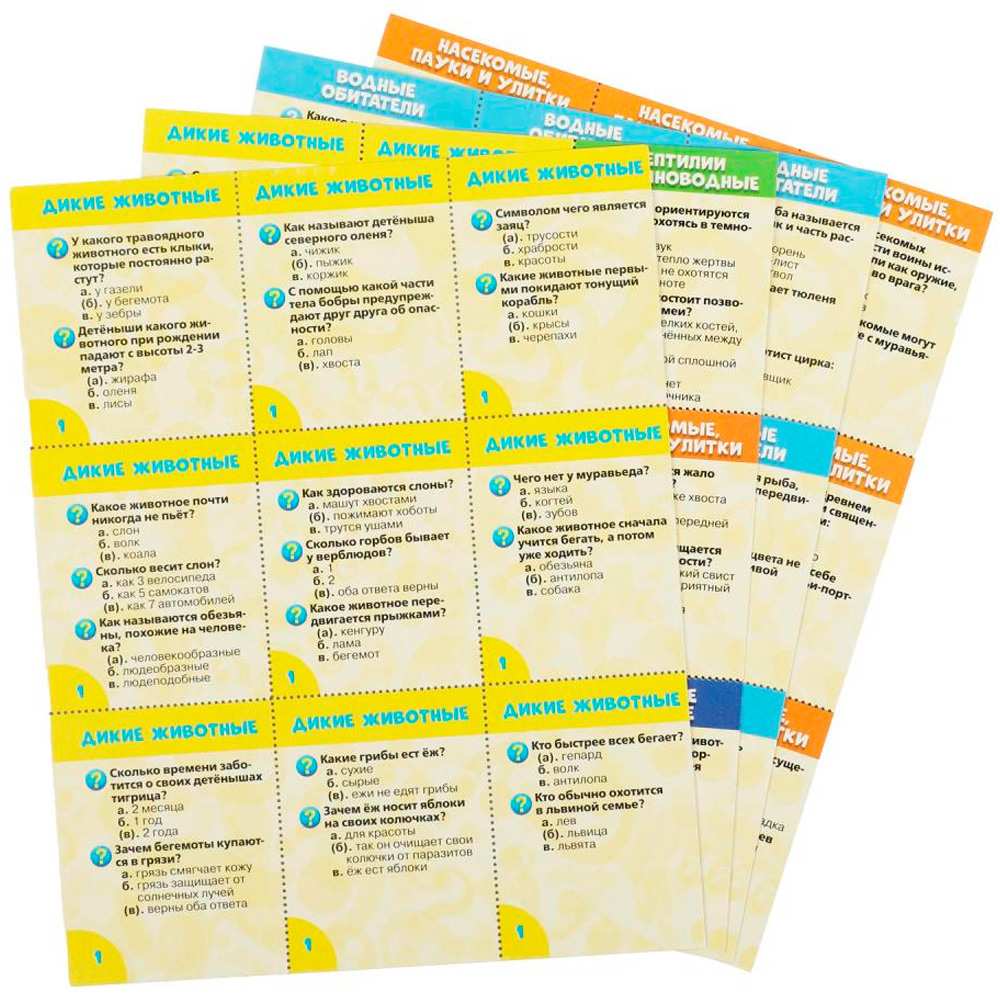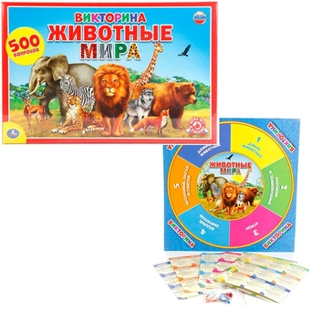 Красочная и яркая игра-викторина с карточками - прекрасный способ весело и с пользой провести время с друзьями и в кругу семьи. Красивые иллюстрации привлекут внимание ребенка. Оригинальная настольная игра поможет весело и интересно провести время. Игра содержит 500 вопросов о различных животных. Такие игры помогут закрепить и проверить полученные знания, узнать новые интересные факты, сразиться в соревновании на эрудицию. Игра может использоваться индивидуально или в детском коллективе, при проведении тематических занятий. Все элементы игры выполнены из качественных и прочных материалов, окрашены безопасными нетоксичными красками, устойчивыми к износу и выгоранию.