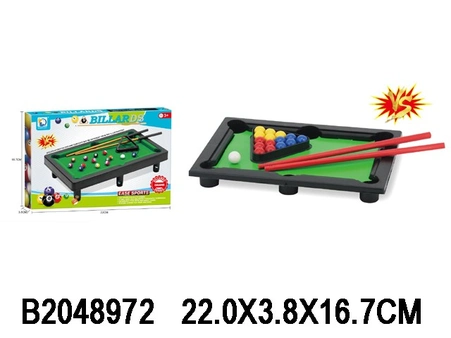 Комплектация: игровое поле - 1 шт., шары - 16 шт., кий - 2 шт., треугольник - 1 шт.