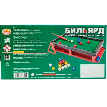 Комплектация: игровое поле - 1 шт., шары - 38 шт., кий - 2 шт., треугольник - 1 шт.