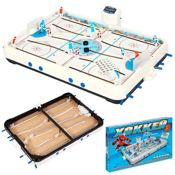 Комплектация: игровое поле - 1 шт, фигурки - 12 шт, ворота - 2 шт, шайба - 2 шт, электронное табло - 1 шт, липкая аппликация - 2 шт
