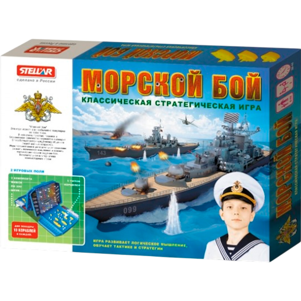 Захватывающая игра "Морской бой" создана по типу традиционной игры, только вместо листка в клеточку и карандаша - игровое поле, фишки и макеты боевых кораблей. Удобный пластиковый чемоданчик позволяет брать игру в дорогу и компактно хранить набор. Игра будет интересна детям и взрослым, поможет в развитии логического мышления и сообразительности.